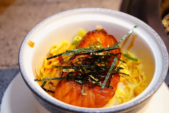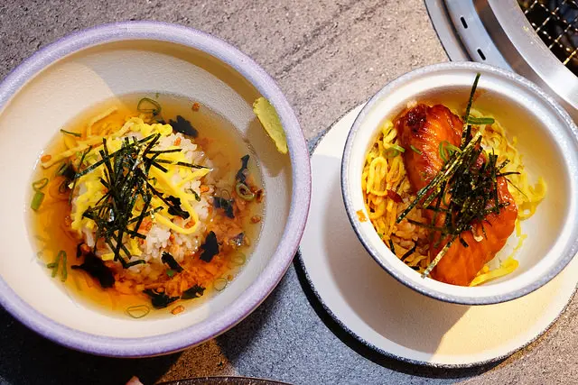 很有特色的北海道鮭魚茶漬飯,上桌後再倒上茶