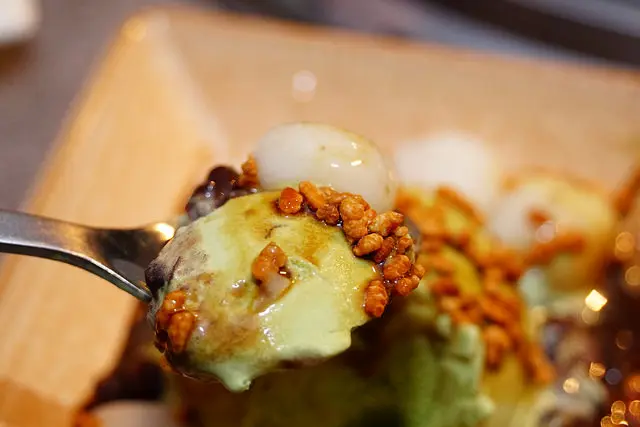讓除了冰淇淋的茶味外又多了口感酥脆、湯圓的Q軟很有趣呢