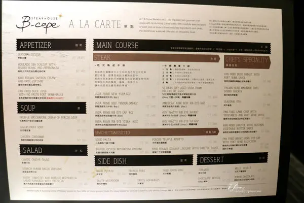 旗下有B-Cape牛排館及名采茶餐廳,名采拜訪的食記請參考