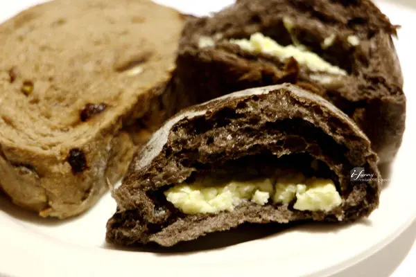 另外一個的歐式麵包,夾了些許葡萄乾,柔軟且具麵粉香氣。