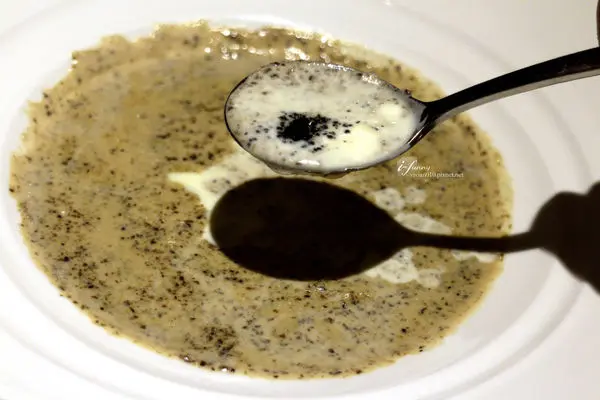 湯喝來很濃稠,喝完後忍不住舔一下齒間的殘碎,讓香氣與唾液持續交織。