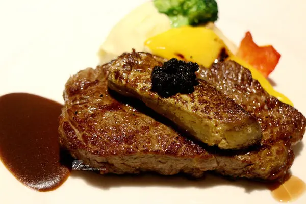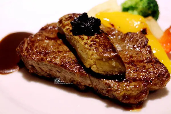他用紅酒、波特酒加上黑松露熬成醬汁,將鵝肝墊在菲力上搭著吃創造了獨特的口味。