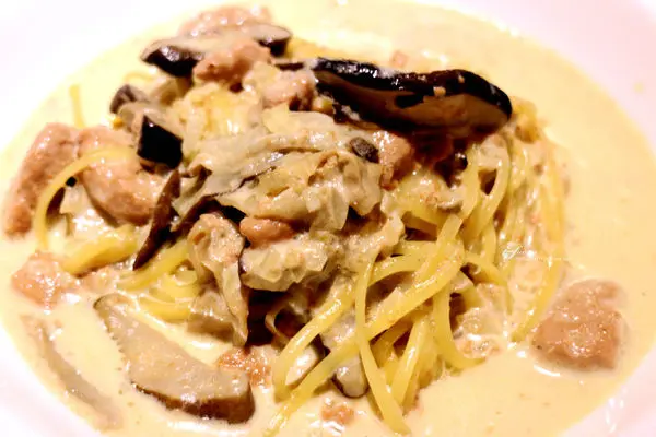 用料大器到都快看不到麵了!滿滿的綜合菇類及鴨肝醬,味道極濃。