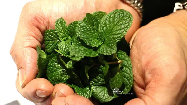 在享用甜點的同時,侍酒師JoJo突然拿了新鮮的薄荷葉來給我們看。