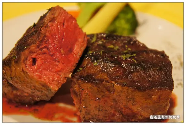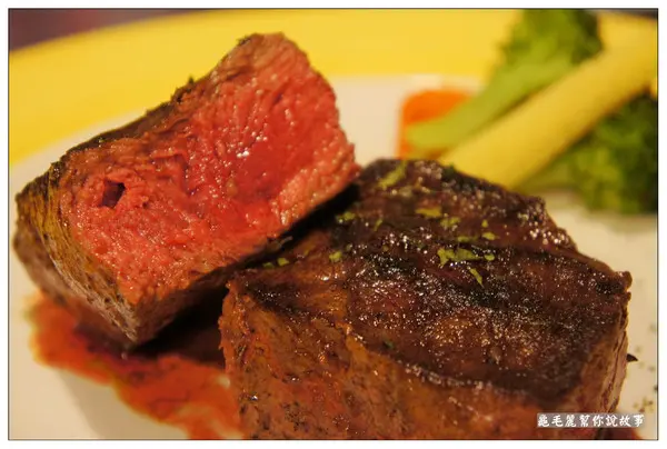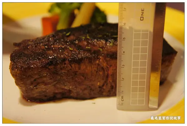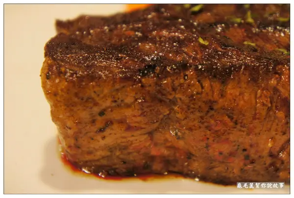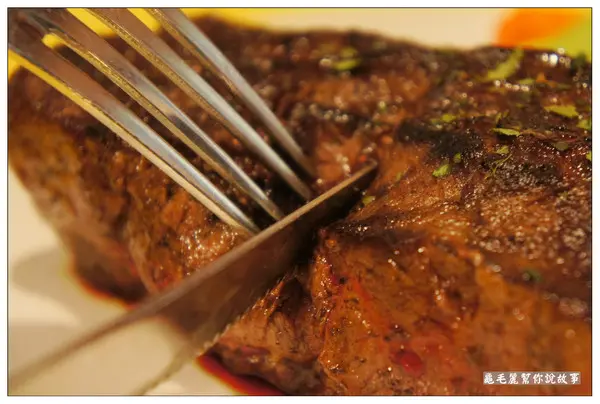 五分熟的牛排,應該會是肉質最軟嫩、口感最舒服、甜度最甜,為了吃到厚切牛排最美好的滋味,所以我先試試五分熟。 四公分,就是這麼厚!五分熟,裡面就是這麼軟嫩!肉質好,就是這麼多汁! 刀子一切,肉汁立刻流出…