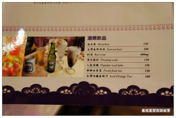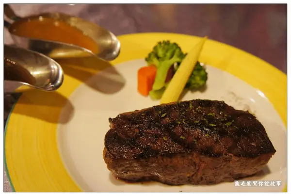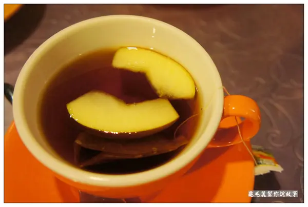 配菜和牛排一樣,也都是清甜的食物原味。 飲料::有六種口味可供選擇。 果香茶有蘋果香的果茶,在外面下雨的夜裡,喝了全身暖呼呼。