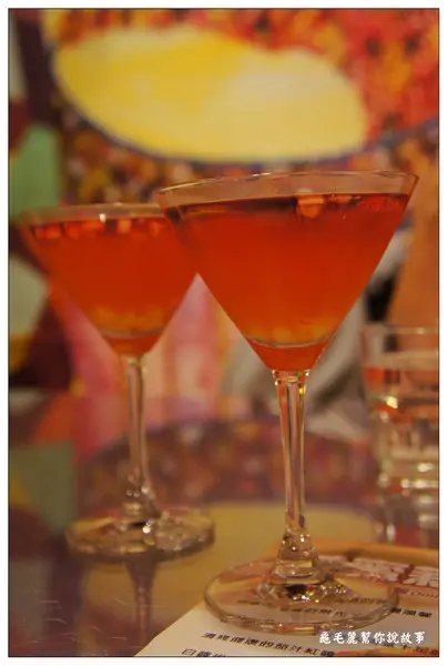 一入坐,艾莉就招待我和好友菓菓麻這杯艾蜜水果酒,