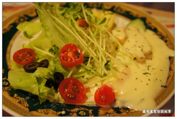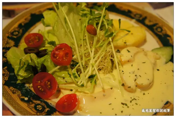3、沙拉盤有冰過、牛排盤有熱過,讓餐點不會降溫。
