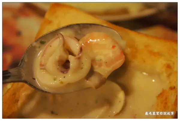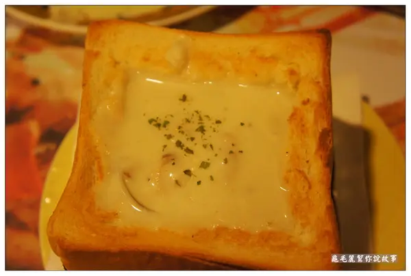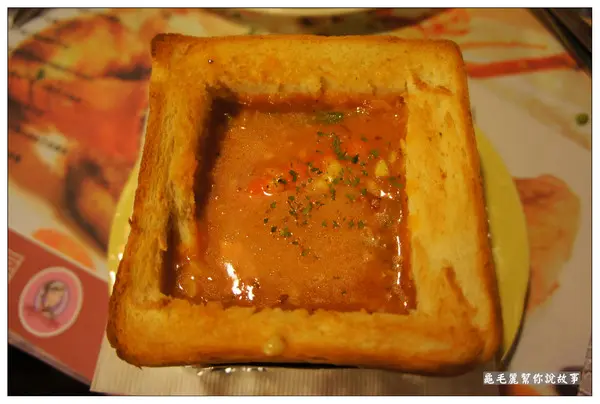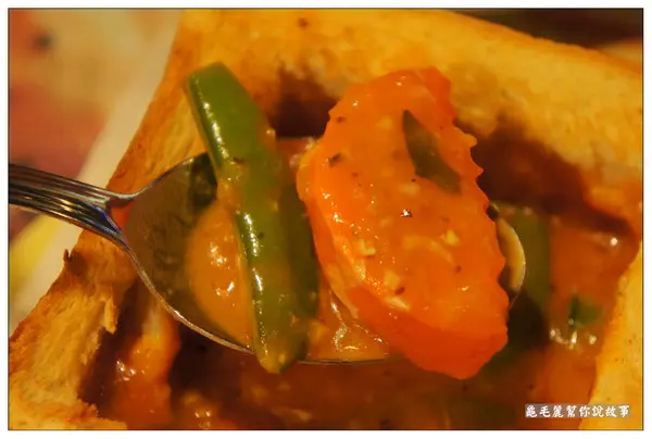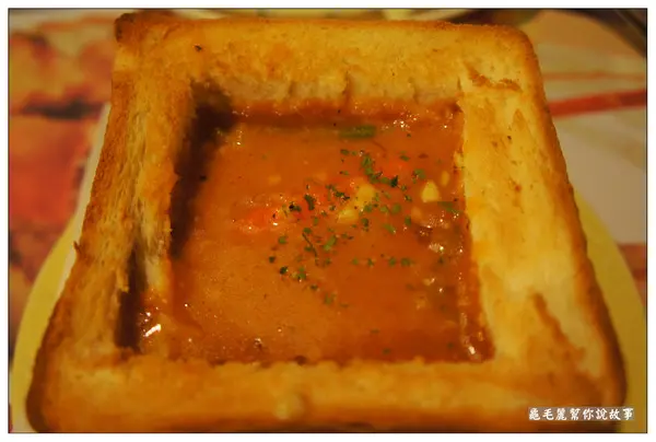月桂葉、洋蔥+蒜頭帶出蕃的甜味,喝起來像是蕃茄義大利麵的醬汁的感覺,酸酸甜甜,再伴隨一旁烤得金黃酥脆的金磚吐司一起吃,又是一個讚字!