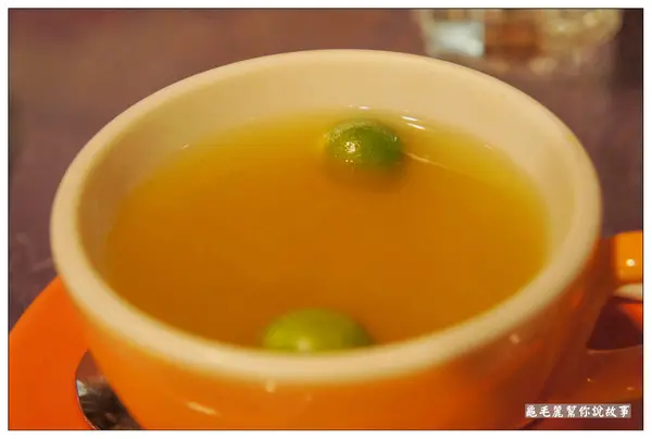 當天因為我有咳嗽,所以艾莉準備了一杯古早味的熱桔茶給我。這是我這輩子喝過最讚的桔茶。裡面有麥牙的甜、金桔的果香、加上薑的微辛、又有金桔發酵過的好味道,喝完身體會發熱。