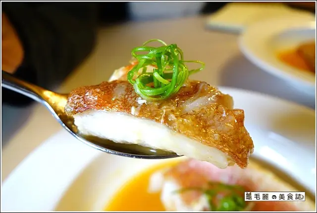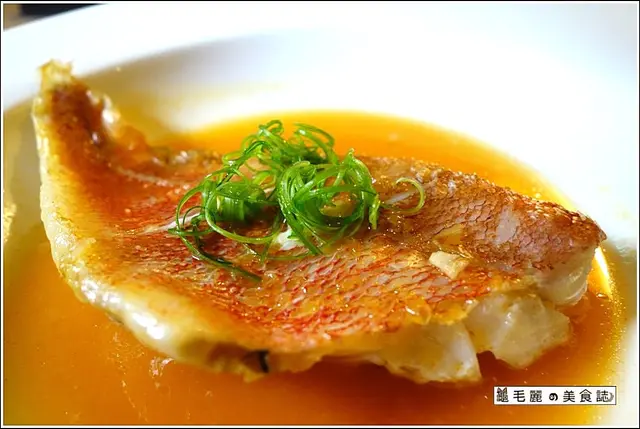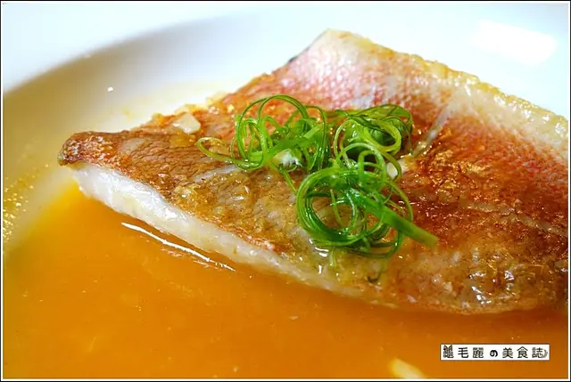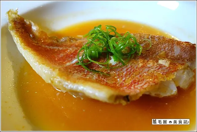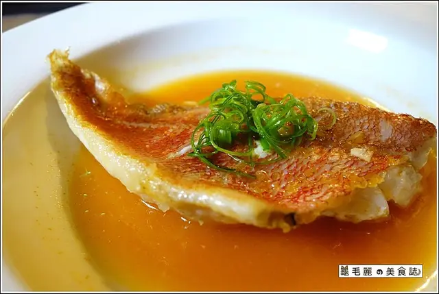紅魚肉質鮮嫩細緻,整體調味微鹹中帶鮮,入口後尾韻,有綠胡椒的辣在舌尖殘留。