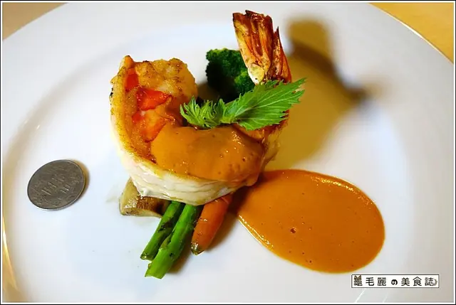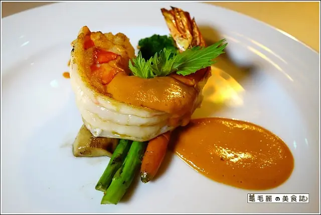 京都水菜、紅蘿蔔 ,蘆筍、杏鮑菇、青花椰…簡單的原味,卻更襯出大虎蝦的鮮香!