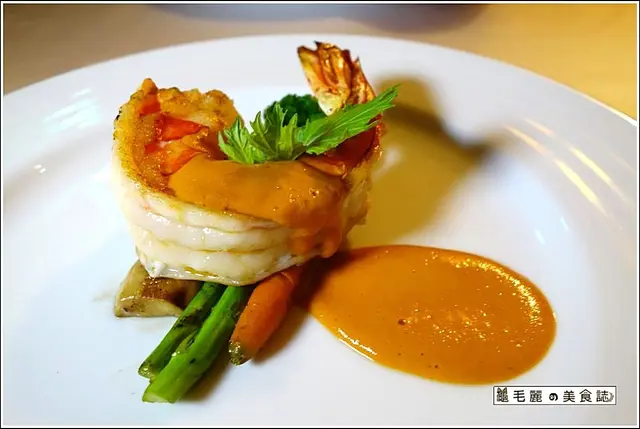 上面的醬汁,是以蝦膏+白酒,完全不加任何一滴水,細火慢熬而成,