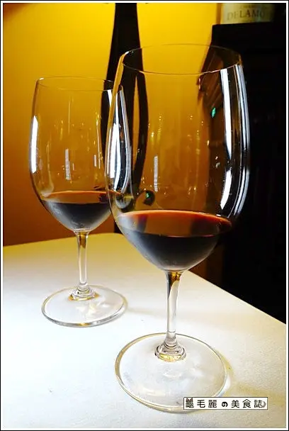 跟主廚相談甚歡之下,在牛排上桌前,居然有兩杯紅酒上桌。