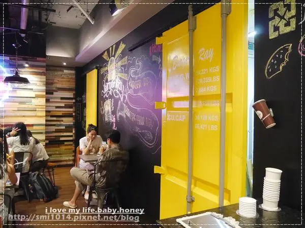 另一邊有美式風格的彩繪牆,黃.黑的強烈對比 呈現出Burger Ray不同於別的漢堡店的個性風格