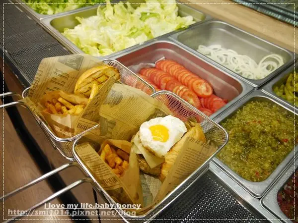 感覺好像自己製作漢堡一樣,第一次來的我還傻傻的不知道該加什麼好哩! 哈哈