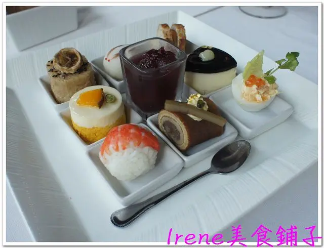 紅酒番茄寒天凍、酪梨燻雞三明治、明太子風魔鬼蛋、芥末鮮蝦丸壽司、仙草凍蓮子慕斯、乳酪南瓜浮島、香蕉松露米布丁、柚香玉兔和菓子、相思牛蒡燒菓子
