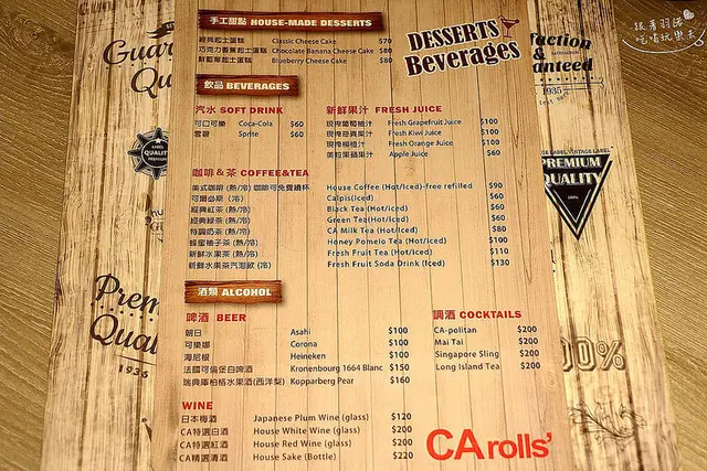 CA rolls'美日式料理的菜單設計得很精緻 光看這menu的設計感就可以感受到濃厚的異國風情