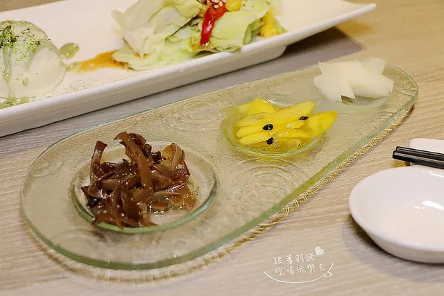 這天的開胃菜裏頭有和風木耳絲 百香青木瓜 及柚香蘿蔔