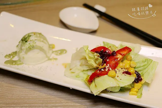 套餐附的沙拉以紅椒 蔓越莓果乾 玉米增色