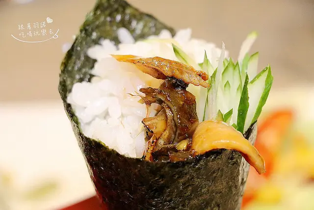 加入了柴魚絲 小黃瓜 高麗菜絲 小黃瓜的手卷超適合夏天享用
