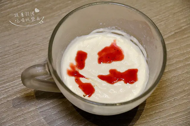 滑嫩的奶酪甜而不膩 搭配香甜的草莓醬更有畫龍點睛的效果 好吃!!!!