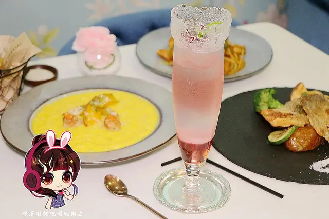 裏頭加入了氣泡水 玫瑰糖漿 少量可爾必思 覆盆子 及七喜