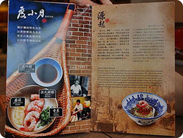 這可要從1895年說起,原籍漳州的祖先移民至府城後靠著打漁為生,每年清明到中秋海上風浪大,是打漁人的淡季,漁民稱它為小月,為了生活養家活口,度過小月,先祖就賣起了麵來,由於口味獨特,受到大眾接受,後來直接轉行賣起了麵來,一開始則是挑著擔仔沿街叫賣,所以就取名為度小月擔仔麵,是說這樣的故事應該列入國小的歷史才對~哈哈!