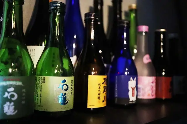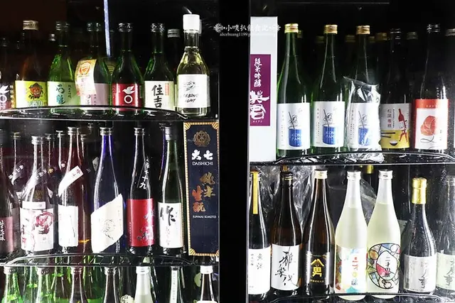 冰櫃裡有很多瓶裝的清酒,種類非常多,都是老闆自日本親自選購的
