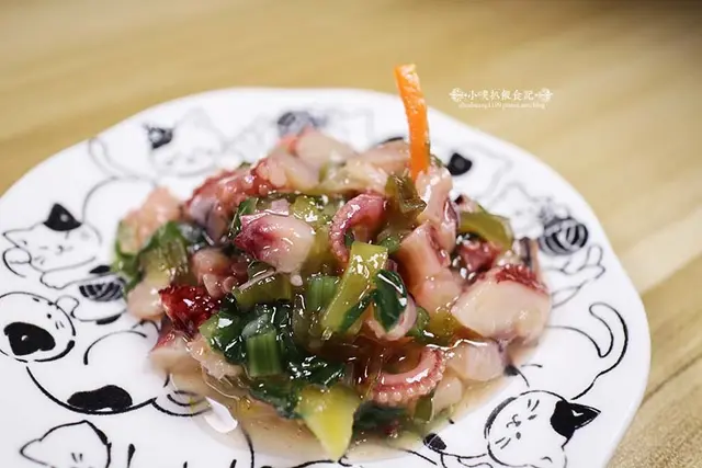 Q彈鮮嫩的生章魚,涼拌蔥末及芥末醬汁,些許的芥末嗆辣感,搭配嫩度十足的生章魚,相當爽口開胃