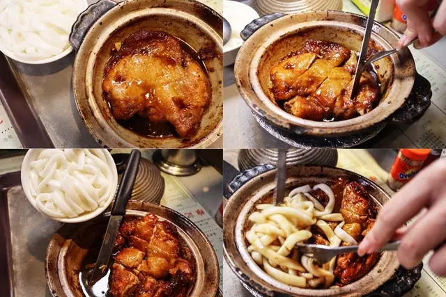 一上桌,服務員會桌邊服務,將雞腿肉分切成好入口的大小,再倒入煮好的粿條,最後,將醬汁拌勻在粿條上,香噴噴的濃郁香氣,真讓人食指大動