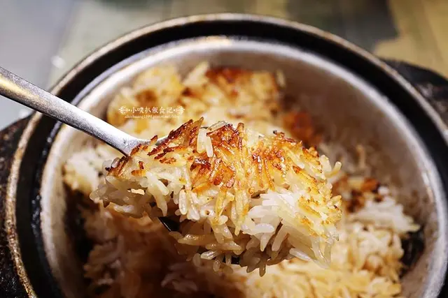 使用泰國香米入砂鍋,至少煮20分鐘,讓時間慢慢的將米飯煮至底下有鍋巴香,因為要讓鍋巴能均勻分佈,所以要不斷移動鍋子,相當費時又費工