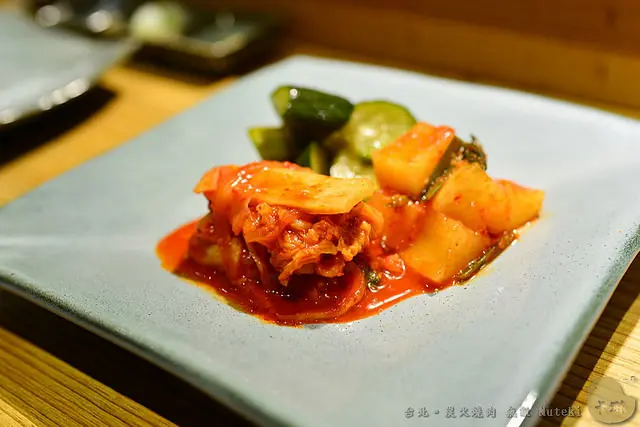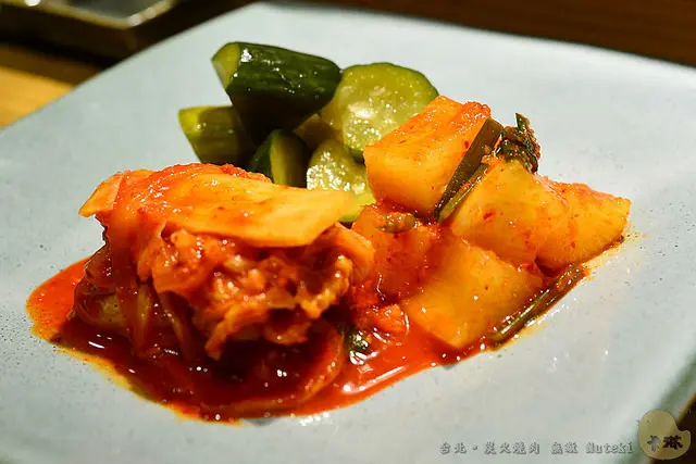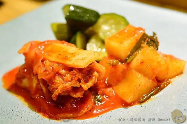三種泡菜的各有不同風味且都十分入味,小黃瓜偏酸,清爽開胃;蘿蔔則是酸鹹並重;白菜則較鹹,但卻又保留白菜的脆甜口感。