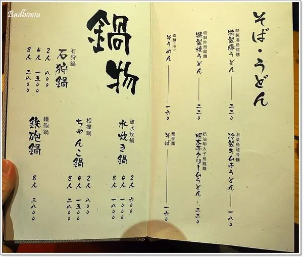menu,喬麥麵烏龍麵等等,種類還不少,也有鍋類,但單價就比較高一些