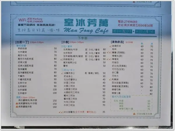 萬芳冰室就在有名的佳德鳳梨酥旁的巷內,搭捷運的話應該是南京三民路站比較近(據說是從2號出口出來),若是開車來,附近也有超多停車場可以停的,可以看個人喜好挑想停的停車場。