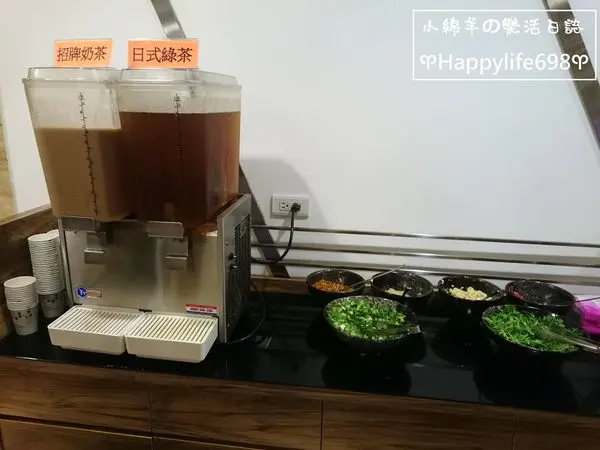 免費飲料的部份有提供招牌奶茶和日式綠茶,一旁是調味料。