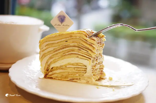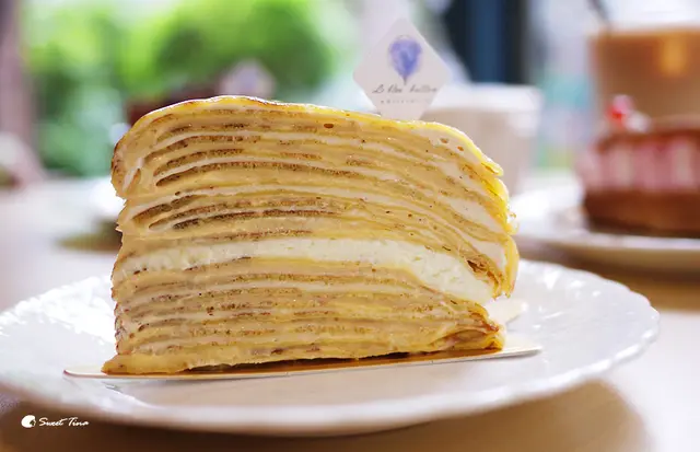 焦糖乳酪千層蛋糕 - 內容有法式可麗餅、焦糖卡士達、法國奶油乳酪、焦糖香緹鮮奶油,每次看到千層蛋糕就有一種非點不可的衝動,哈~~ 千層派控是也,但你們看這一層層夾著細緻的焦糖卡士達醬,是誰有辦法抵檔咧,而且這款蛋糕目前又是藍氣球假日限定款,不點實在對不起自己啊~