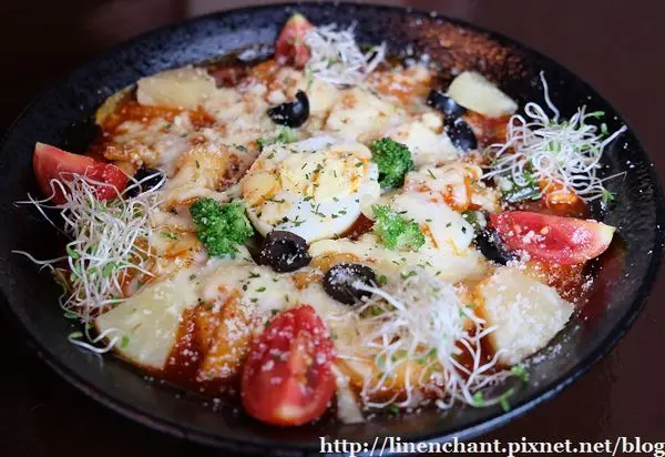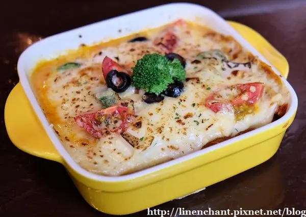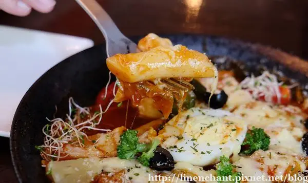 感覺有點西韓合併味道的炒年糕,把韓式炒年糕加上起司~再增加一些蔬菜點綴...看起來挺吸引人的!!