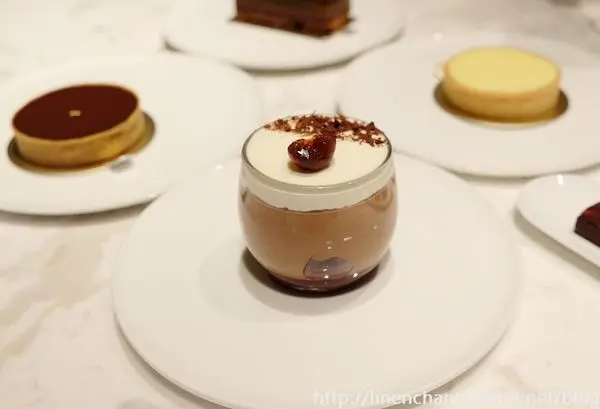 酒漬櫻桃與巧克力蛋糕排排站,再加入mousse au chocolat 跟香緹~