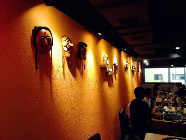 店內有兩層樓裝潢擺飾就是有好多面具掛在牆上 環繞著你看久了...其實覺得有些毛毛的耶