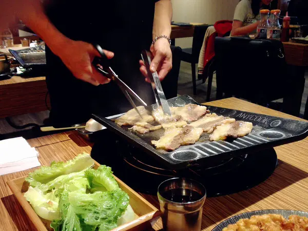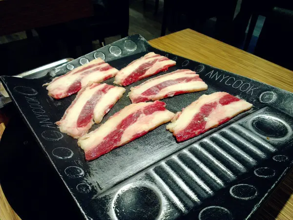 不用擔心不知道怎下手烤肉店員會幫你包辦好肉片部分就像照片中分量一樣一共有六片