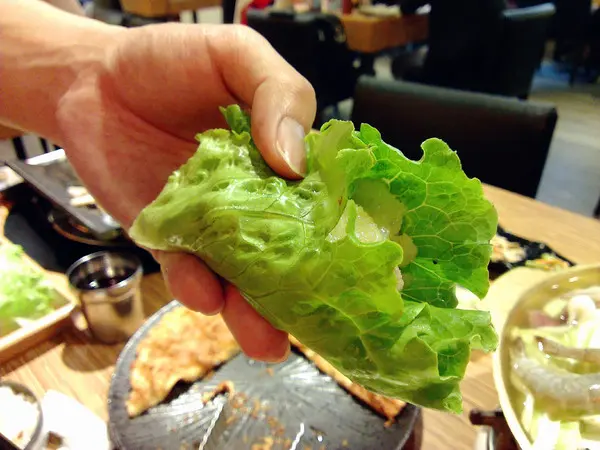 接下來的吃法就是用生菜包肉和小菜當然還有最代表韓式的泡菜再沾沾肉的醬汁就可以喽