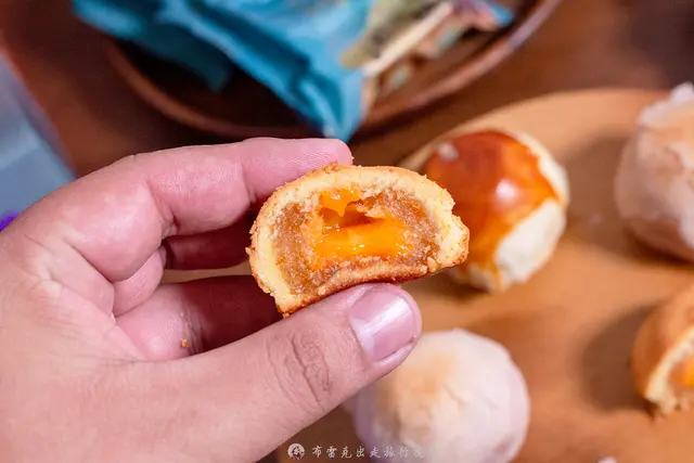 外表看起來像是芋頭酥,但卻是超有心機的芋頭酥,芋頭控一定要試試看,主要是芋頭酥裡面還包了鹹蛋黃流心餡,芋頭是用上大甲芋頭,吃起來很綿密然後甜度有出來但不會讓人覺得太膩口,主要是鹹蛋黃的鹹度讓整個甜味不會太過,而且整個食材用料都很用心,麵粉是用日本昭和麵粉,奶油則是用法國奶油,吃起來真的有夠讚。