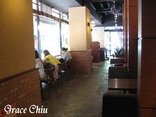 側邊入門口連接至櫃枱的走道區除了內側座位也有靠窗的座位,櫃枱前用餐區的地面有貼了地板,但這區的地面不知是沒用還是故意不弄好?粗糙地面感覺與環境有點格格不入.