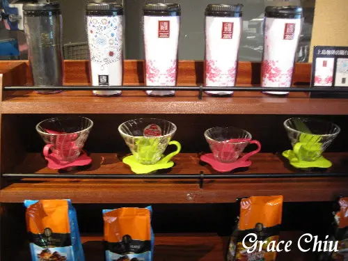 上島珈琲採自助式消費,自己找好位置然後到櫃枱去點餐取餐,今天的顧客比較多所以排隊的同時也順便看了周邊展示櫃陳列的商品,咖啡杯.咖啡器材.咖啡豆等.
