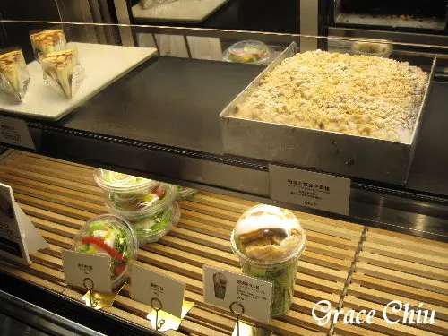 櫃枱邊冷藏櫃上層有擺了蛋糕,有需要可於點餐時點用,下層是可供開放自取結帳的沙拉,感覺上島的餐點價位有些略為偏高,不過有部份餐點有做套餐優惠可以參考看看,另外飲品部份也有提供跟銀行信用卡合作的優惠(特殊節日不適用),我們這次用國泰世華卡今年度合作優惠點了二杯咖啡,享有第二杯半價優惠.