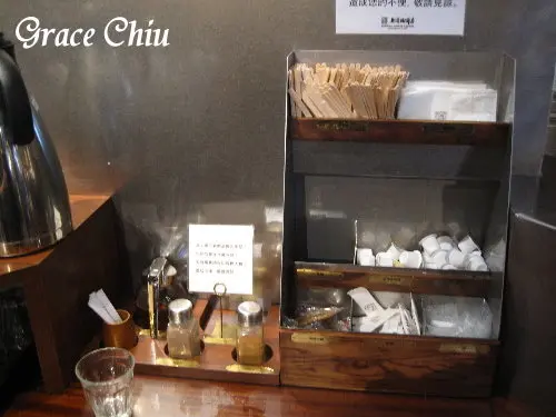 結帳後可於旁邊自取所需的糖包.奶油球.紙巾等備品