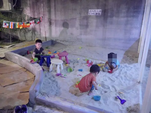 小朋友待在沙坑與樹屋需要有家長陪同喔