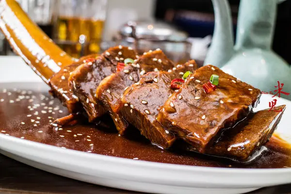 愛吃牛肉的人則不能錯過用美國choice級牛肋排做的「紅燒原條牛肋骨」,取三根骨頭約五斤重的整大塊牛肋骨,用秘制老滷汁滷過後再燜入味,去除了筋和肥油之後,只能取出1.5斤的肉,所以每一分呈現在客人桌上的牛肋骨,都是精華中的精華,柔軟中帶著韌性的口感,除了滷汁豐美的滋味,還能吃出牛肉本身的鮮甜,是這道菜最令人激賞的地方!
