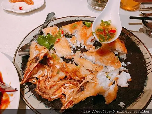 金黃酥脆的筍殼魚,淋上蔥油後香氣四溢叫人口水直流,